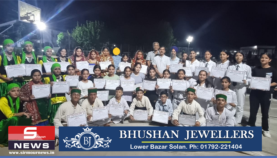 कार्यशाला के मुख्य समन्वय एवं प्रदेश के प्रख्यात संस्कृत कर्मी कुलदीप गुलेरिया ने कहा कि संगीत से आदमी का सदियों से नाता रहा है संगीत आत्मिक और मानसिक शांति प्रदान करता है और नृत्य तो हमारी रगों में दौड़ता है नृत्य तो खुशी व्यक्त करने का सबसे बड़ा माध्यम है यानी यूं कहे तो नृत्य के बिना कोई भी समारोह संभव नहीं है । उन्होंने कहा कि एक महीने से ज्यादा चली “शिक्षा में कला” कार्यशाला में छात्रों को मुख्यतः सिरमौरी नाटी के अतिरिक्त मंडी जनपद का प्रधान लोक नृत्य लुडडी, कांगड़ा का झमाकड़ा और सोलन का पड़ुंवा नृत्य इत्यादि का प्रशिक्षण देने के साथ साथ लोक संस्कृति के विभिन्न पहलुओं की जानकारी भी दी गई ।उन्होंने छात्रों को जागरूक करते हुए कहा कि आज के बदलते परिवेश और पाश्चात्य संस्कृति के प्रति युवाओं का आकर्षण, ग्लैमर के साथ मोबाइल व टीवी संस्कृति ने लोक संस्कृति को लुप्त होने की कगार पर पहुंचा दिया है ऐसे समय में लोक संस्कृति का संरक्षण एवं संवर्धन अति आवश्यक है उन्होंने कहा कि कला क्षेत्र आज एक उद्योग बन चुका है इसमें कैरियर की अपार संभावनाएं हैं ,इज्जत है शोहरत है पैसा है सम्मान है । विद्यालय के म्यूजिक टीचर डॉ इंद्रजीत सिंह ने विद्यालय के अध्यापकों, स्टाफ व छात्रों का 21 अगस्त से 30 सितंबर तक सफलता पूर्वक चली कार्यशाला में सहयोग देने के लिए धन्यवाद व्यक्त करते हुए कहा कि बच्चों के सर्वांगीण विकास के लिए शिक्षा के साथ कला व खेल गतिविधियां भी अति आवश्यक है जिससे बच्चे स्वस्थ रहने के साथ परिश्रमी, दृढ़ एवं आत्म विश्वासी बनकर नित नए आयाम स्थापित कर सकते हैं।