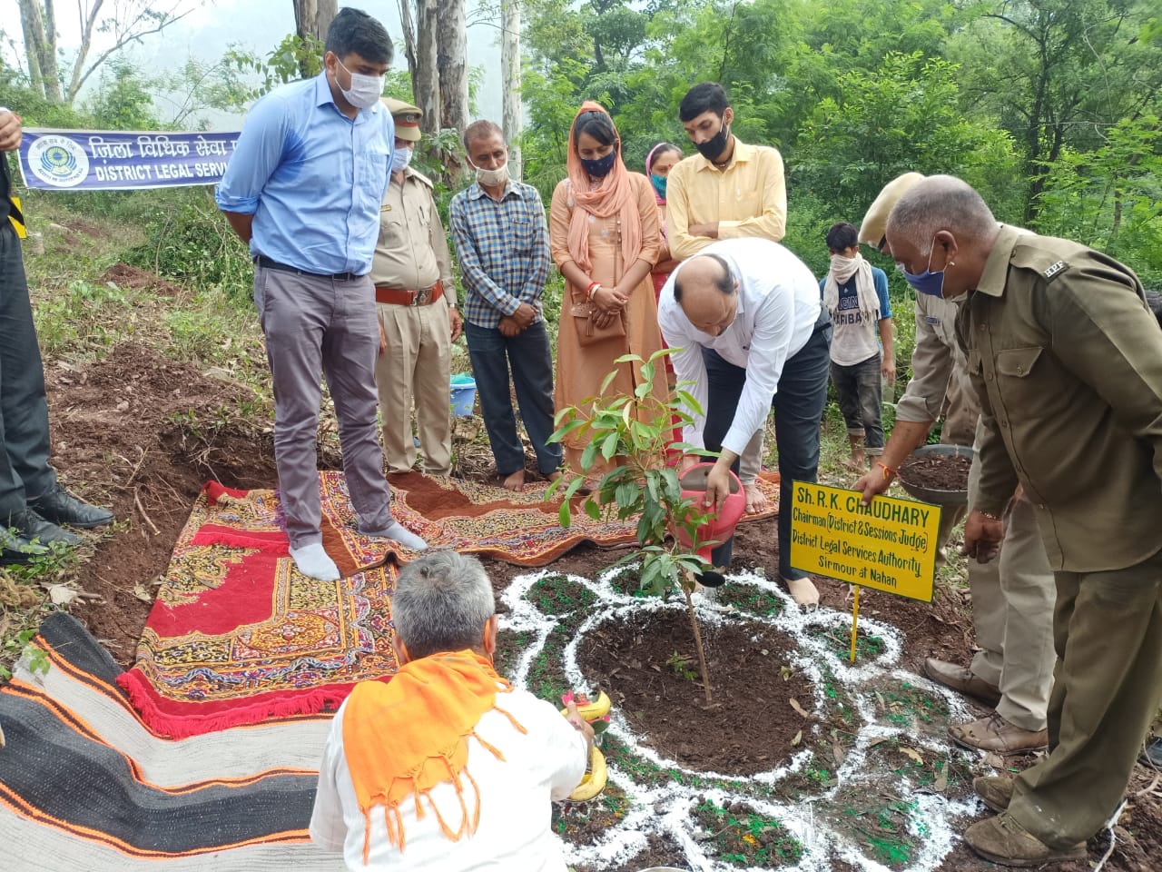 जिला विधिक सेवा प्राधिकरण, सिरमौर ने नाहन के सैन की सेर में वन विभाग के साथ मिलकर ‘जंगली फल लगाओ फसल को बचाओ’ और ‘स्वस्थ वातावरण, स्वस्थ जीवन’ नारे के तहत पौध रोपण किया। इस पौध रोपण अभियान में जिला एवं सत्र न्यायधीश व अध्यक्ष जिला विधिक सेवा प्राधिकरण, सिरमौर आर.के. चौधरी विशेष तौर पर उपस्थित रहे।