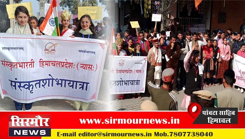 मंगलवार को प्रातः 11:00 बज़े से संस्कृतभारती हिमाचलप्रदेश द्वारा सिरमौर जिला के पांवटा साहिब में संस्कृत शोभायात्रा का आयोजन किया गया । इस शोभायात्रा का आयोजन संस्कृतभारती हिमाचल प्रदेश की ओर से 01.01.2024 से 10.01.2024 तक की अवधि में सम्भोटा, तिब्बतन विद्यालय, पौंटा साहिब स्थान पर चल रहे दश दिवसीय आवासीय प्रबोधन वर्ग के दौरान किया गया ।
