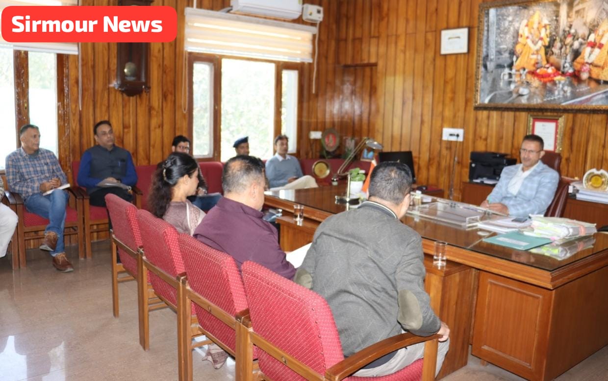 उपायुक्त सिरमौर सुमित खिम्टा की अध्यक्षता में उपायुक्त कार्यालय में सड़क सुरक्षा समिति की बैठक का आयोजन किया गया।उपायुक्त ने बैठक में रोड़ सेफ्टी से जुडी विभिन्न गतिविधियों की जानकारी ली तथा राष्ट्रीय राज मार्ग के अधिकारीयों को रोड सेफ्टी पॉलिसी और नियमों को जनहित में गंभीरतापूर्वक लागू करने के लिए निर्देष दिए।उन्होंने पुलिस विभाग को राष्ट्रीय राज मार्गों पर सड़क सुरक्षा में सुधार के दृष्टिगत दो अतिरिक्त कैमरे लगाने के लिए स्थान चिन्हित करने के लिए भी कहा।